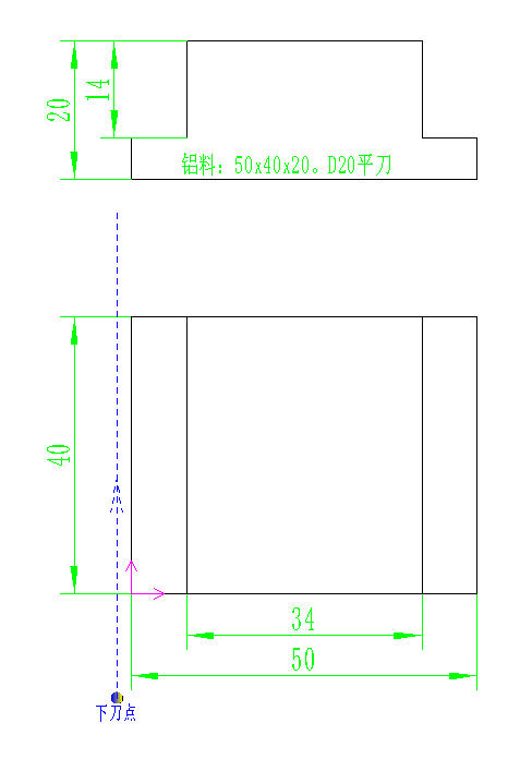 十五、双阶台模块零件 | 主程序 | 子程序 | 图 | | ------------------------------------------------------------ | ------------------------------------------------------------ | ----------------------------------------------------- | | O0001<br/>(data:2025-10-24 programmer:tyjs09)<br/>G17 G54 G21 G94 G90 G40 G49 G80<br/>M06 T0101<br/>G0 X-2 Y-15 M03 S2000<br/>Z50<br/>M98 P0051<br/>G51.1 X25<br/>M98 P0051<br/>G50.1<br/>G91 G28 Z0<br/>G90 G28 X0 Y0<br/>M05<br/>M30 | O0051<br/>G0 Z5<br/><br/>G01 Z-2 F80<br/>Y55 F300 <br/><br/>Z-4 F80<br/>Y-15 F300<br/><br/>Z-6 F80<br/>Y55 F300<br/><br/>Z-8 F80<br/>Y-15 F300<br/><br/>Z-10 F80<br/>Y55 F300<br/><br/>Z-12 F80<br/>Y-15 F300<br/><br/>Z-14 F80<br/>Y55 F300<br/><br/>G0 Z100<br/>M99 |  |