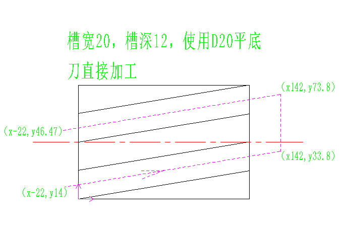 二十二、双台阶配合零件 | #主程序<br/>O0001<br/>G17 G54 G21 G94 G90 G40 G49 G80<br/>M06 T01<br/>G0 X-22 Y14 M03 S2000<br/>Z50<br/>#1=-2<br/>M98 P0051 L6<br/>G91 G28 Z0<br/>G90 G28 X0 Y0<br/>M05<br/>M30<br/><br/>#子程序1<br/>O0051<br/>G0 Z5<br/>G01 Z[#1] F80<br/>M98 P0052<br/>#1=#1-2<br/>M99<br/><br/>#子程序2<br/>O0052<br/>G01 X142 Y33.8 F300<br/>Y73.8<br/>X-22 Y46.47<br/>Y14<br/>M99 | 主程序:负责调用子程序1<br/>子程序1:负责z向切深并调用子程序2<br/>子程序2:负责xy平面的轮廓走刀<br/><br/> | | ------------------------------------------------------------ | ------------------------------------------------------------ |